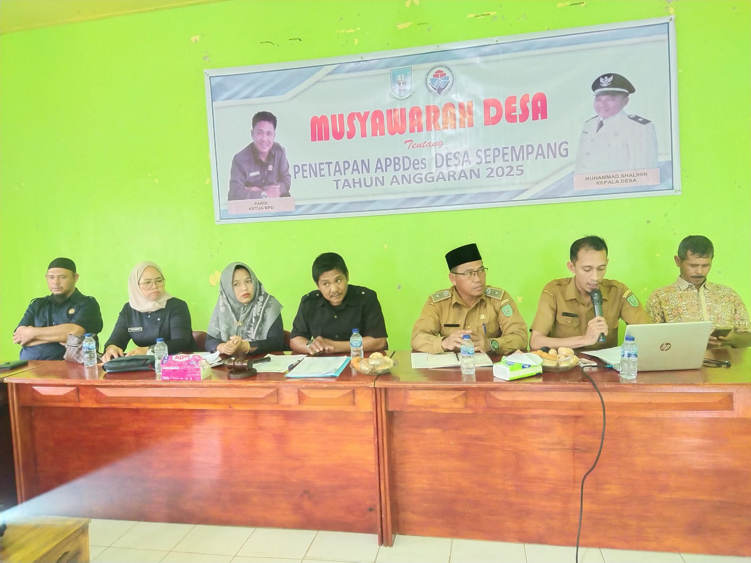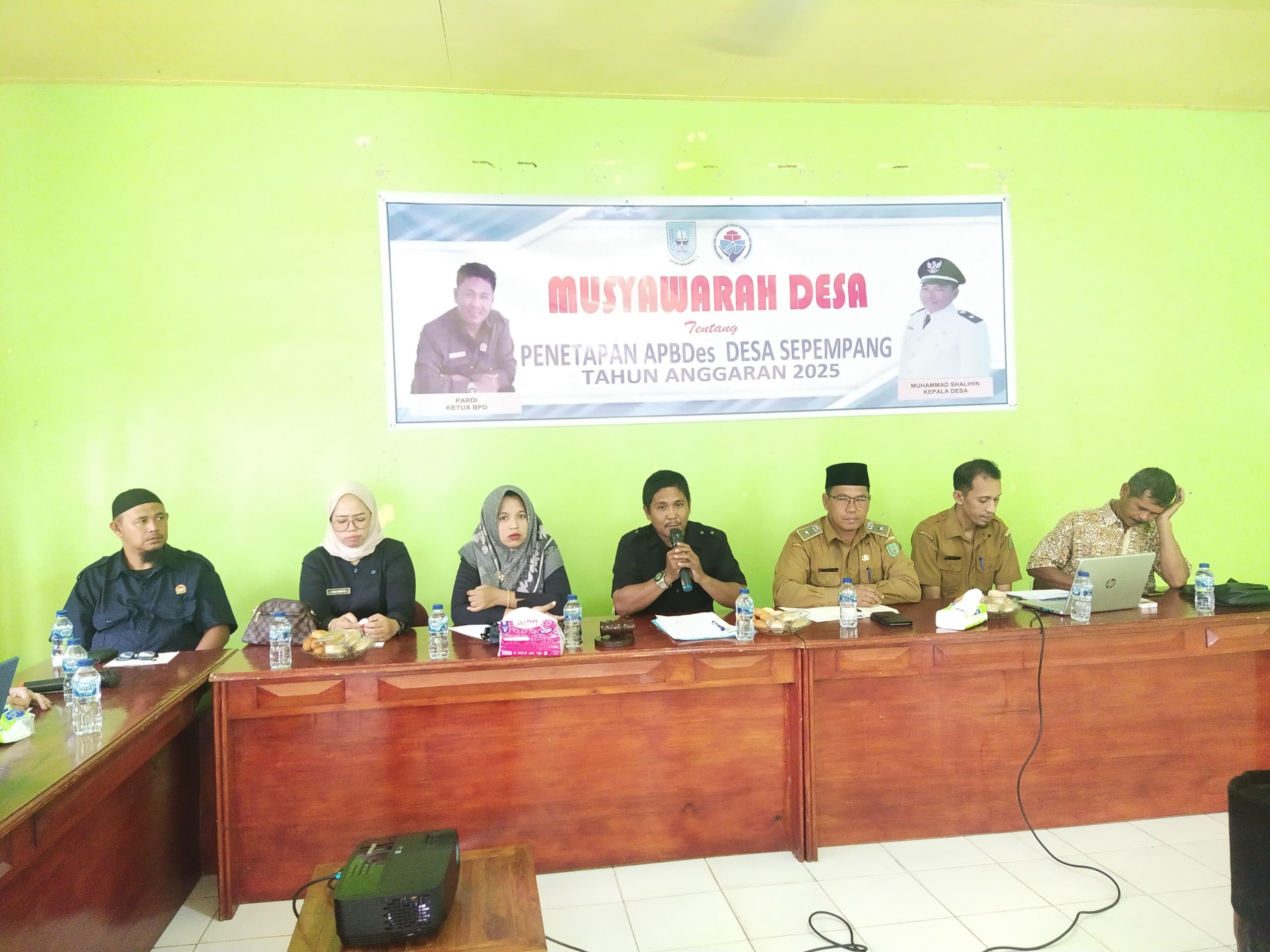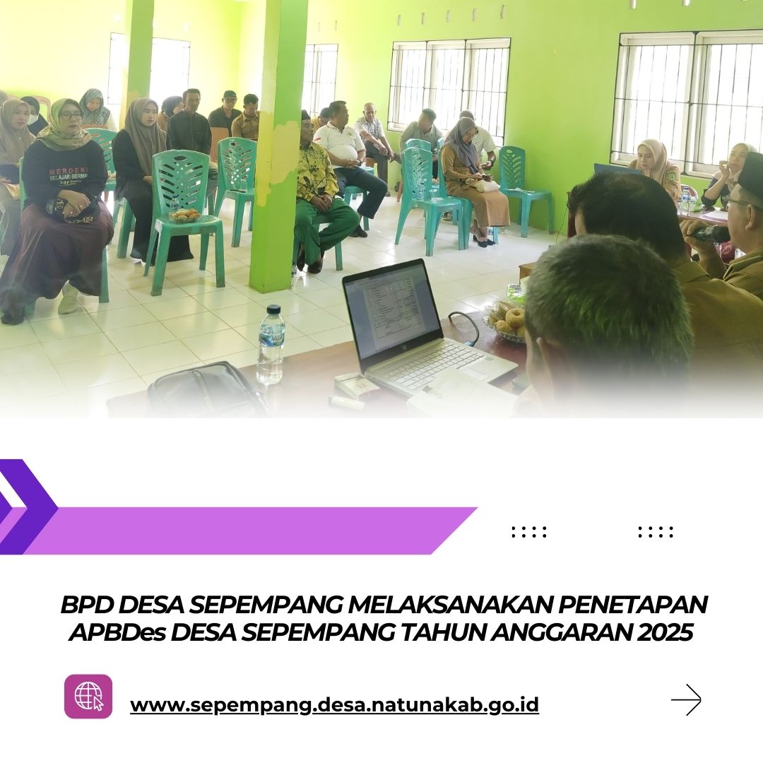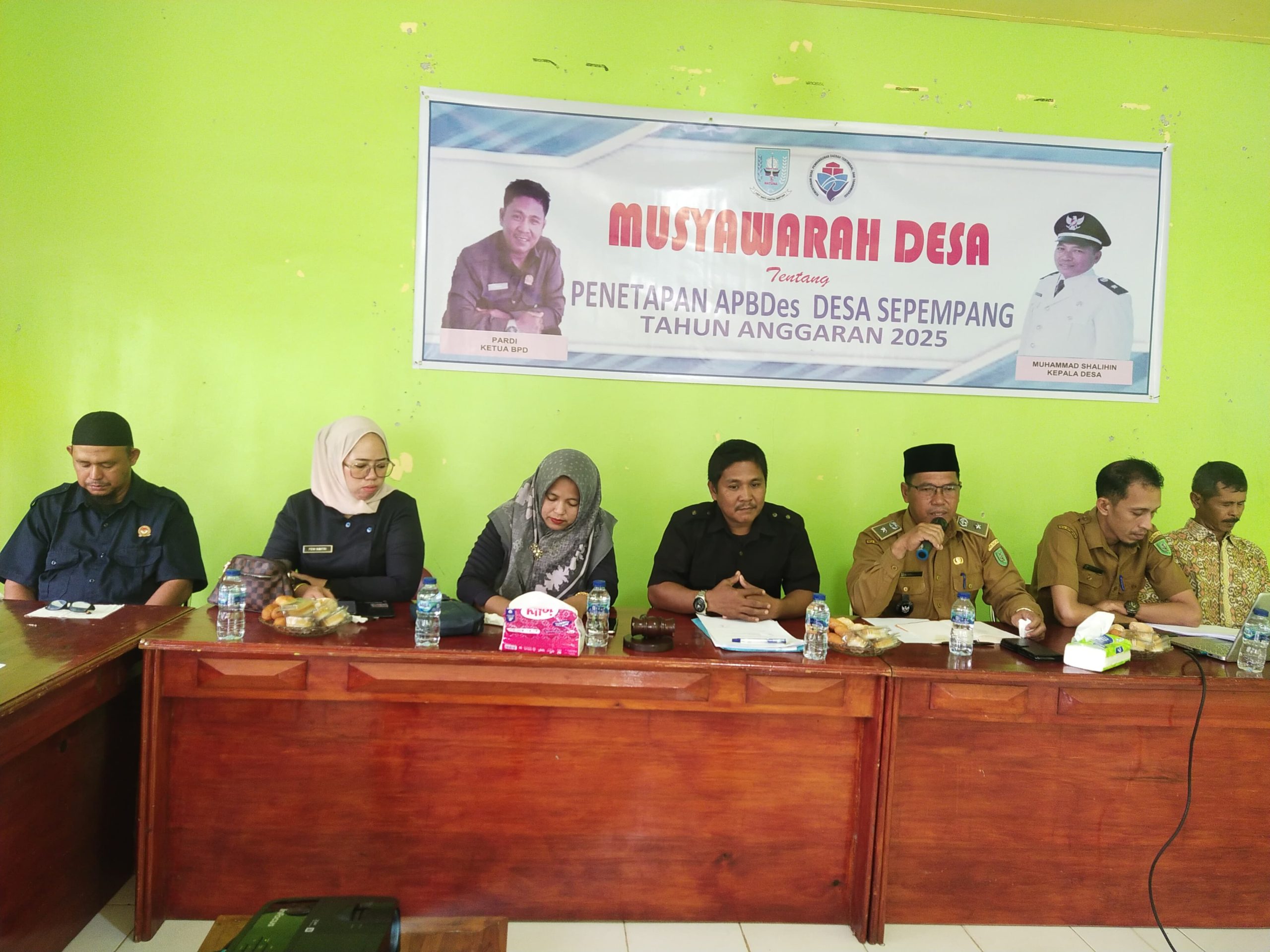Senin, 23 Desember 2024 pukul 09.00 WIB BPD Desa Sepempang bersama Pemerintah Desa Sepempang melaksanakan Musyawarah Penetapan APBDes Tahun Anggaran 2025. Bertempat diruang Rapat Satu Atap BPD Desa Sepempang, yang turut hadir dalam acara tersebut Kepala Desa Sepempang, Sekretaris Desa Sepempang, BPD Desa Sepempang, RT, RW, Pendamping Desa, dan Lembaga – Lembaga Desa Sepempang.