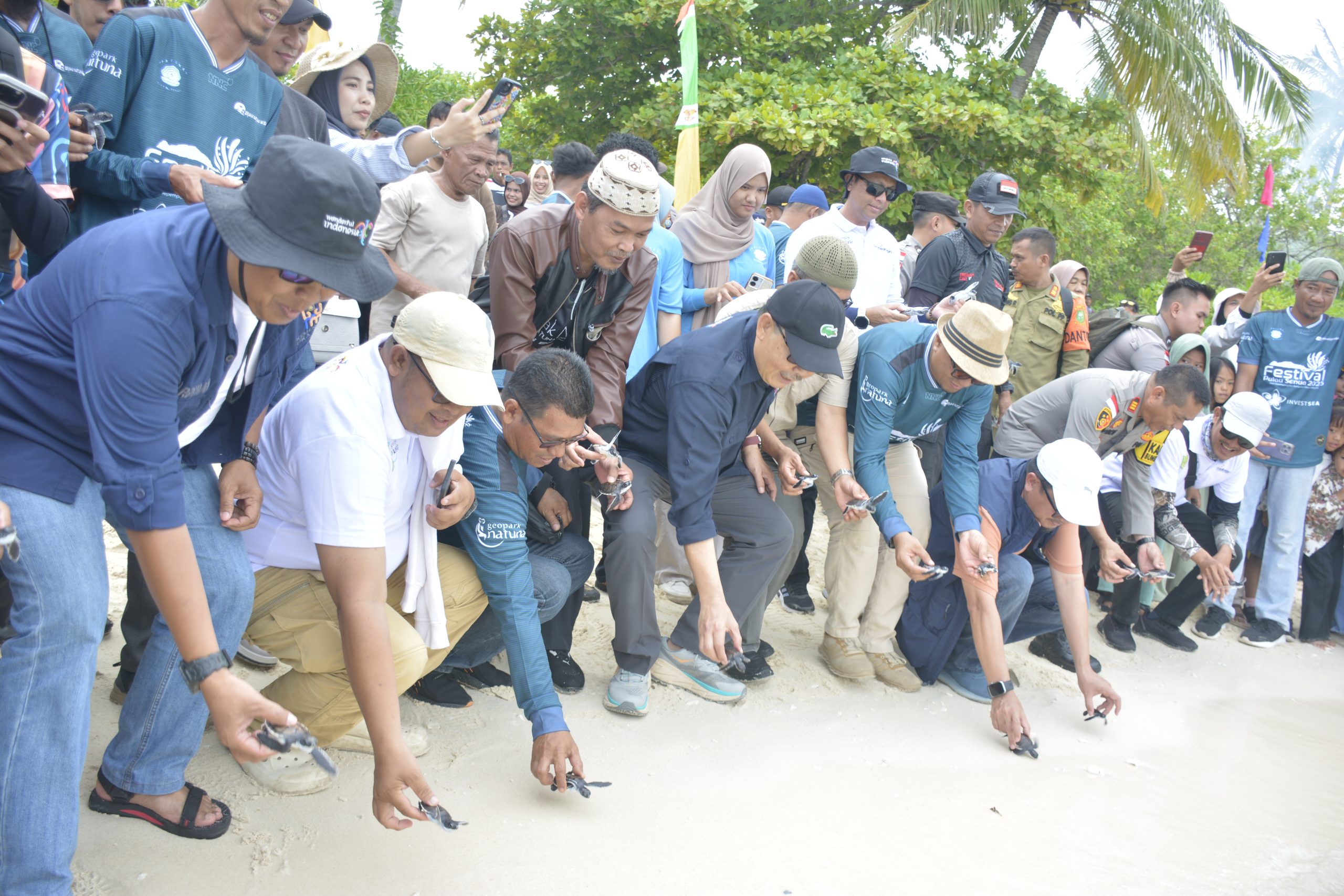 Sebagai penutup, acara Festival Wisata Pulau Senua juga dimeriahkan dengan pelepasan 150 ekor tukik (anak penyu) yang dikelola oleh BUMDes Maju Jaya Desa Sepempang, sebagai bentuk kepedulian terhadap kelestarian lingkungan dan ekosistem laut