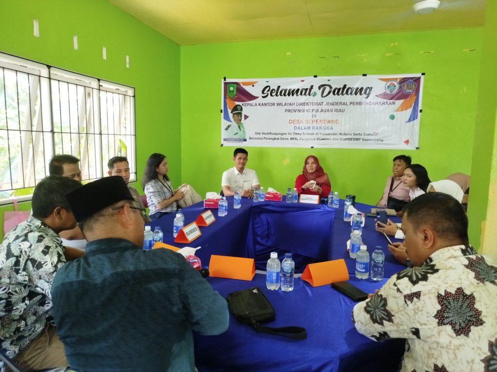Kegiatan ini dilaksanakan pada pukul 13.30 WIB di Ruang Rapat Gedung Satu Atap Kantor BPD Desa Sepempang, dan disambut hangat oleh Pemerintah Desa serta berbagai unsur kelembagaan desa. Dalam kunjungannya, Kepala Kanwil DJPb Kepri didampingi oleh Dinas Pemberdayaan Masyarakat dan Desa (PMD) Kabupaten Natuna serta Dinas Koperasi Kabupaten Natuna. Turut hadir dalam kegiatan ini, Camat Bunguran Timur, Kepala Desa Sepempang, Ketua dan Anggota BPD Desa Sepempang, Perangkat Desa Sepempang, Pengurus BUMDes Maju Jaya Desa Sepempang, Pengurus Koperasi Desa (KOPDES) Merah Putih Sepempang.