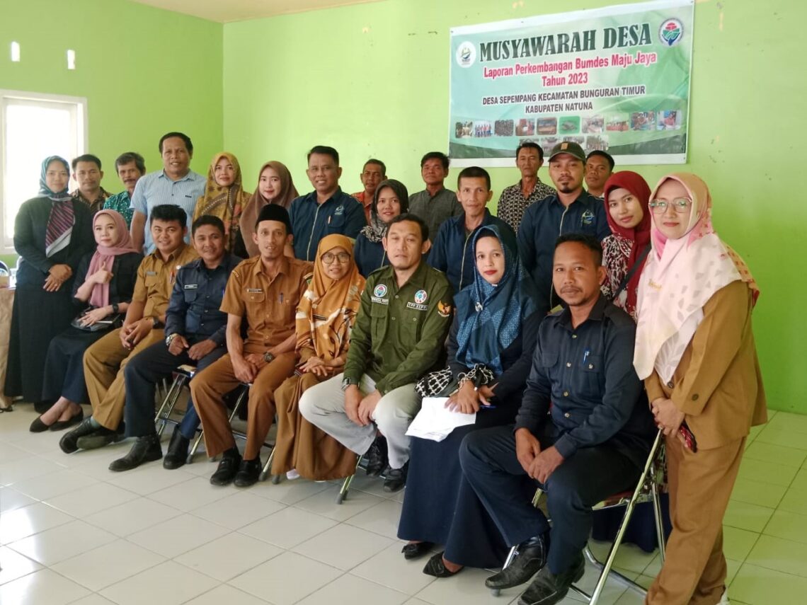 Senin, 22 Mei 2023 Pukul 09.00 Wib Badan Permusyawaratan Desa (BPD) Desa Sepempang melaksanakan kegiatan Musyawarah Desa tentang Laporan Perkembangan Bumdes Maju Jaya Tahun 2022 di Ruang Rapat Gedung Satu Atap Kantor BPD Desa Sepempang. Acara Musyawarah tersebut dihadiri oleh Camat Bunguran Timur yang diwakili oleh Kasi Trantib Kecamatan Bunguran Timur, Dinas Pemberdayaan Masyarakat dan Desa (DPMD) yang diwakili oleh PSM Ahli Muda DPMD, Kepala Desa Sepempang, Sekretaris Desa, Direktur Bumdes beserta anggota, TAPM Kabupaten, Pendamping Lokal Desa, Pendamping Desa, Bhabinkamtibmas, Babinsa, Dusun, RW dan RT. Acara dipimpin oleh Ketua BPD Desa Sepempang Bapak Pardi.