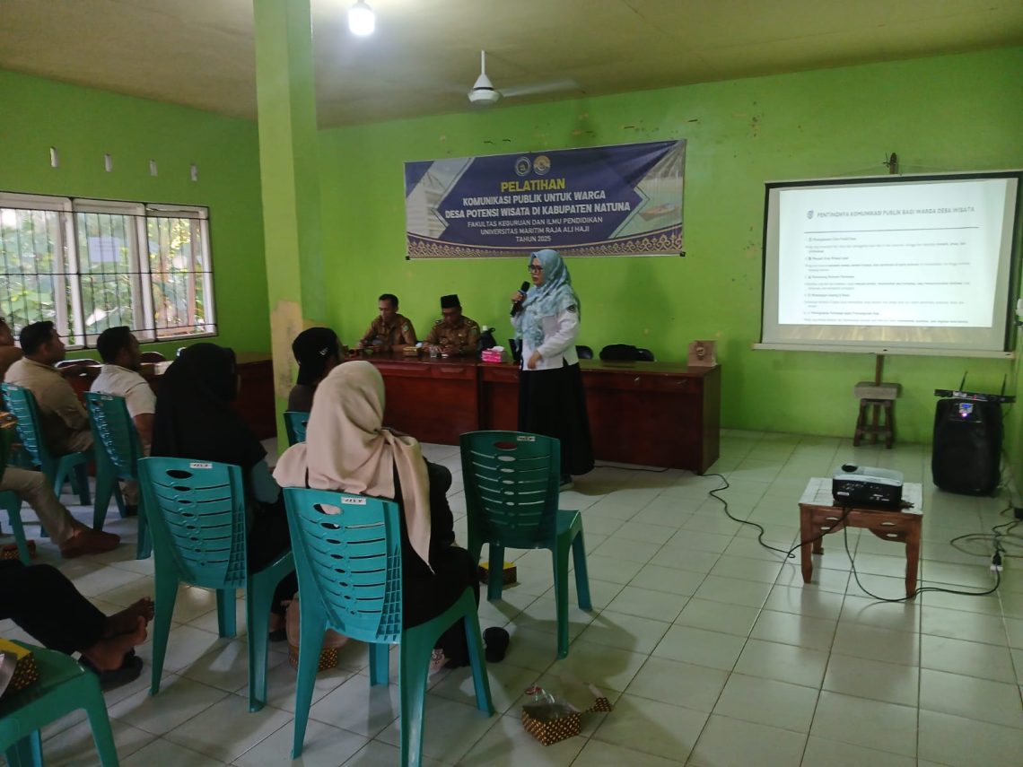 Sepempang, Senin 22 September 2025 – Pemerintah Desa Sepempang bekerja sama dengan Universitas Maritim Raja Ali Haji (UMRAH) Fakultas Keguruan dan Ilmu Pendidikan menyelenggarakan Pelatihan Komunikasi Publik yang berfokus pada pengembangan potensi wisata desa. Kegiatan ini berlangsung pukul 15.30 WIB di Ruang Rapat Gedung Satu Atap BPD Desa Sepempang.