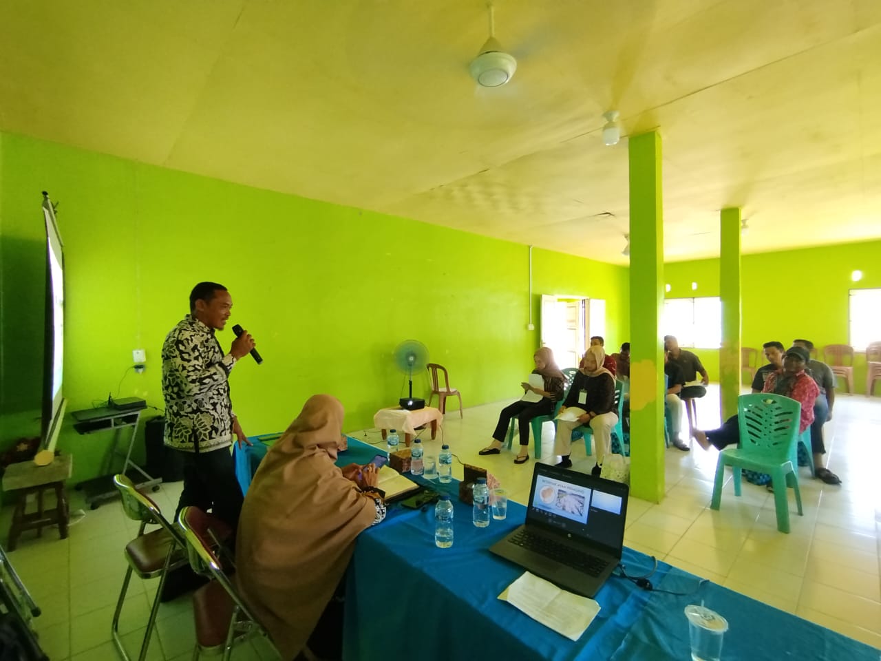 Pelatihan ini menghadirkan dua narasumber utama: Ibu Suryati Widyastuti, SP dari Dinas PMD Kabupaten Natuna, dan Bapak Khairil Iksan, S.ST dari Dinas Ketahanan Pangan dan Pertanian. Keduanya memberikan materi seputar pengelolaan desa tematik yang berfokus pada komoditas unggulan seperti ayam petelur, ayam pedaging, dan palawija.