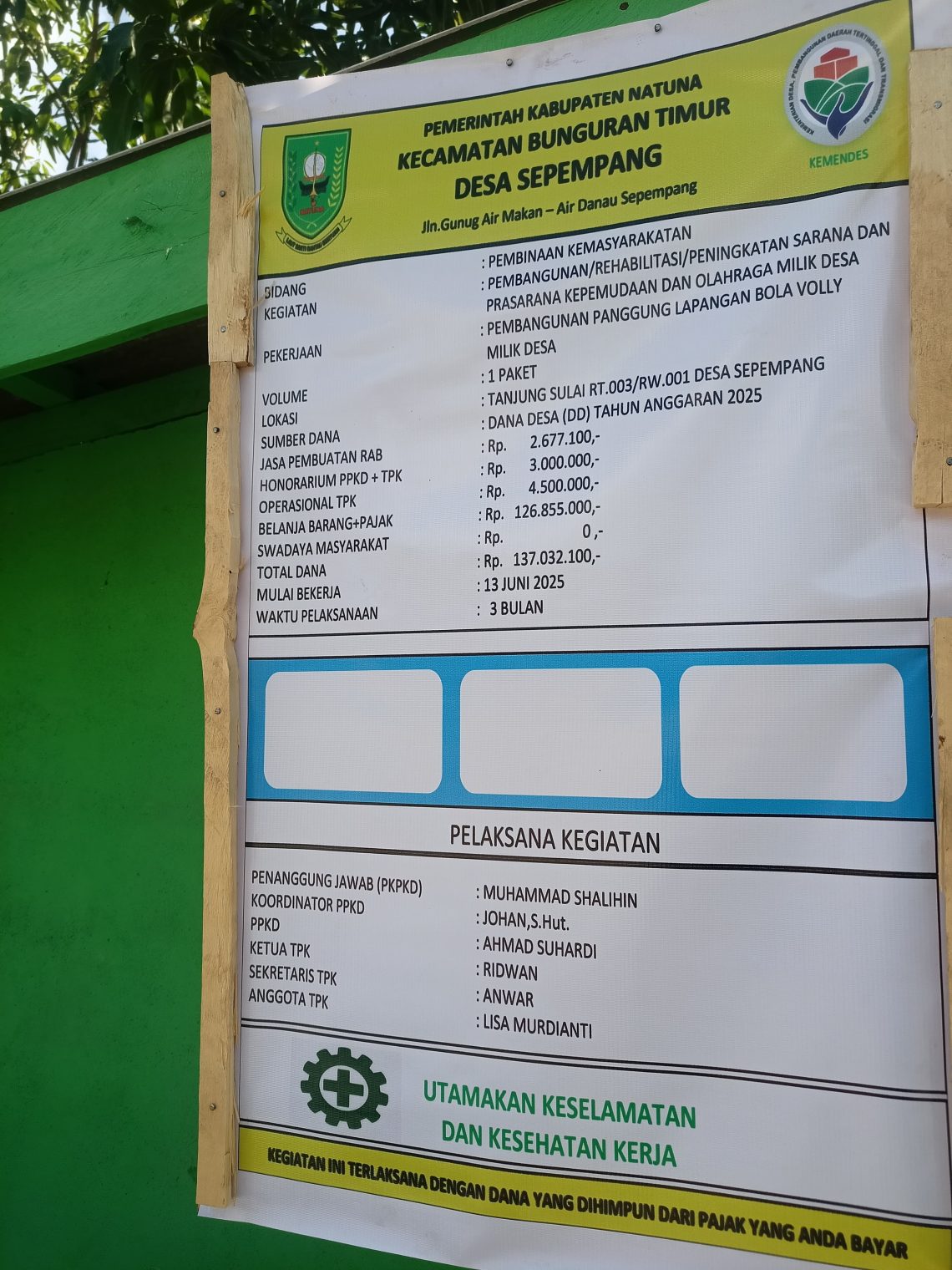 Sepempang, Minggu 15 Juni 2025 — Pemerintah Desa Sepempang melaksanakan kegiatan peletakan batu pertama sebagai tanda dimulainya pembangunan panggung terbuka di lapangan bola voli milik desa, dengan total anggaran sebesar Rp137.032.700, yang bersumber dari Dana Desa Tahun 2025.