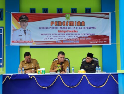 PENGAMBILAN SUMPAH DAN JANJI ANGGOTA ANTAR WAKTU BADAN PERMUSYAWARATAN DESA SEPEMPANG KECAMATAN BUNGURAN TIMUR KABUPATEN NATUNA PERIODE 2020-2026 DISEJALANKAN DENGAN PERESMIAN GEDUNG PERPUSTAKAAN JELITA DESA SEPEMPANG