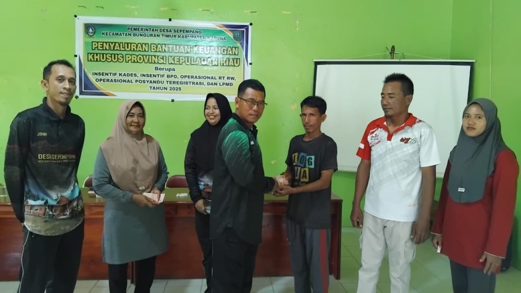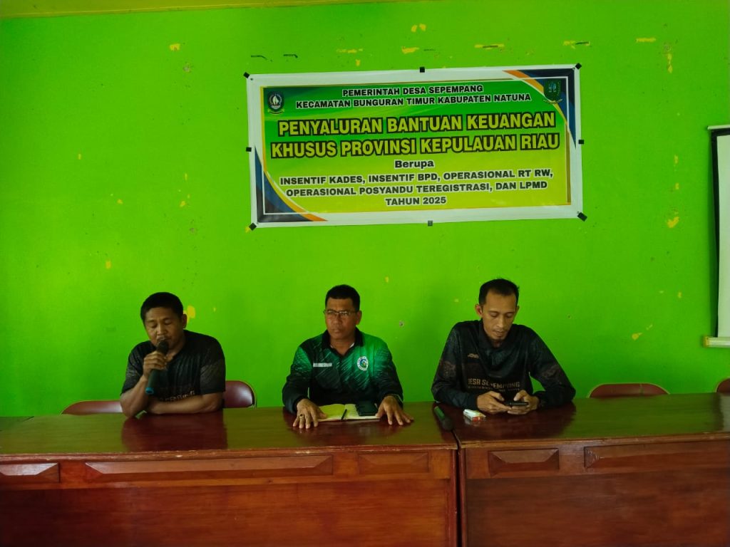 Sepempang, Jum’at 31 Oktober 2025 – Pemerintah Desa Sepempang melaksanakan kegiatan penyaluran Bantuan Keuangan Khusus (BKK) yang diberikan oleh Pemerintah Provinsi Kepulauan Riau. Kegiatan ini berlangsung di Ruang Rapat Satu Atap BPD Desa Sepempang dan berjalan dengan lancar.