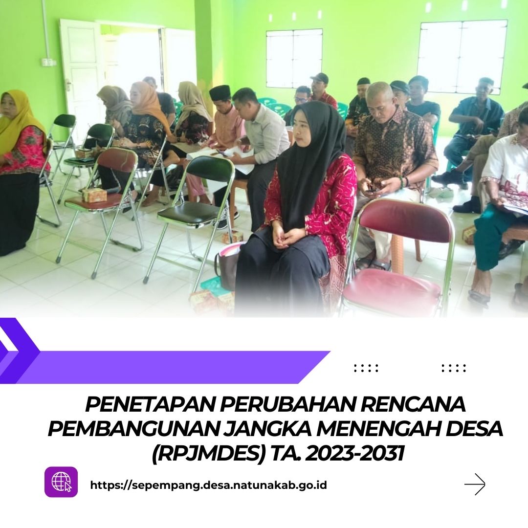 Kamis, 24 Oktober 2024 Pukul 10.00 WIB BPD Desa Sepempang dan Pemerintah Desa melaksanakan Penetapan Perubahan Rencana Pembangunan jangka Menengah (RPJMDes) TA.2023-2031. Bertempat Diruang Rapat Satu Atap BPD Desa Sepempang yang dihadiri oleh Kepala Desa Sepempang, Sekretaris Desa, Ketua BPD beserta anggota, Pendamping Desa, Pendamping Lokal Desa, Dusun, RT, RW dan Lembaga Desa Sepempang.