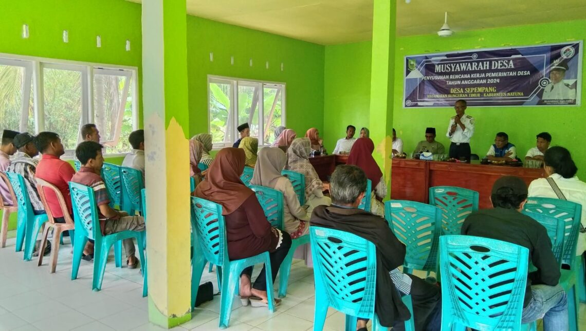 RABU, 20 September 2023 Pukul 09.00 WIB Pemerintah Desa Sepempang bersama BPD Desa Sepempang melaksanakan Pengesahan Rancangan Peraturan Desa Tentang Rencana Kerja Pemerintah Desa (RKPDes) Desa Sepempang Tahun Anggaran 2024. Bertempat Diruang Rapat Satu Atap BPD Desa Sepempang yang dihadiri oleh Camat Bunguran Timur, Kepala Desa Sepempang, Sekretaris Desa Sepempang, Ketua BPD beserta anggota, Tim RKPDes, Pendamping Desa, Tenaga Ahli Kabupaten Natuna, Dusun, RT, RW, dan lembaga – lembaga.