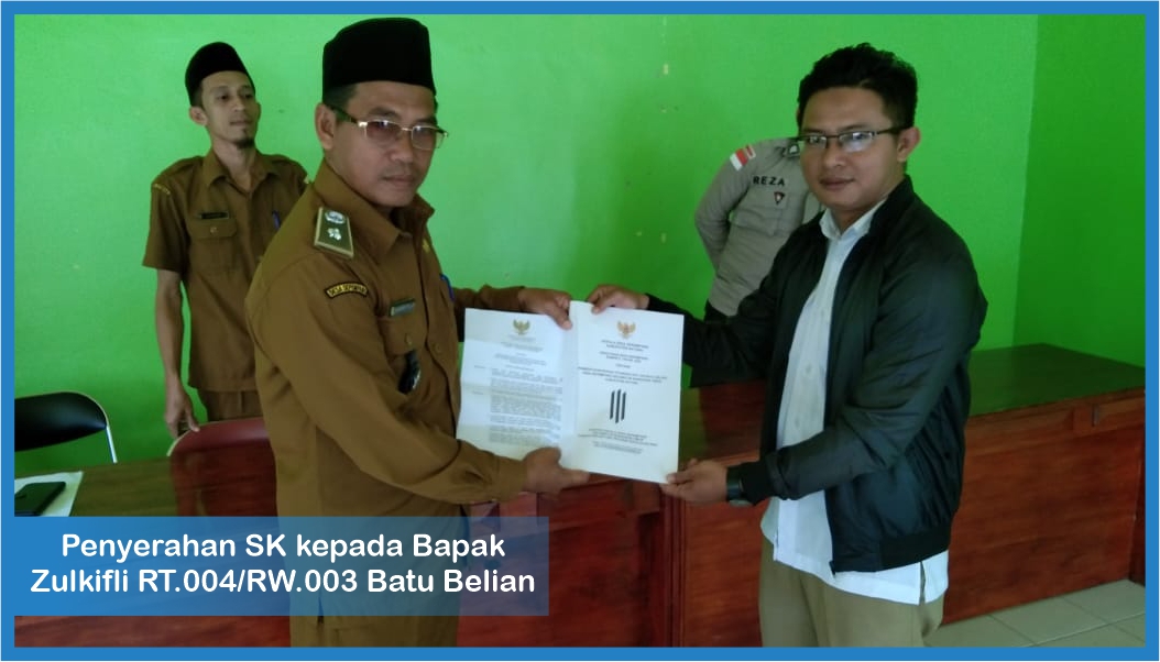 Sekretaris Desa Johan juga berpesan kepada RT yang baru untuk menghimbau kepada warga segera merubah alamat domisili warganya., dan dilihat juga pembangunan apa saja yang dibutuhkan untuk dibangun diwilayah tersebut.