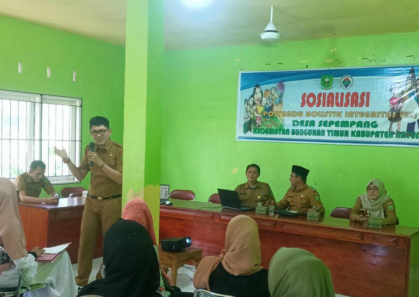 Sosialisasi Posyandu Holistik Integritas (HI) yang menjadi Narasumber Kepala Puskesmas Ranai Bapak Ns.Nazri, S.Kep dan Bapak Edo Saputra, S.E dari Dinas Pemerdayaan Masyarakat dan Desa.