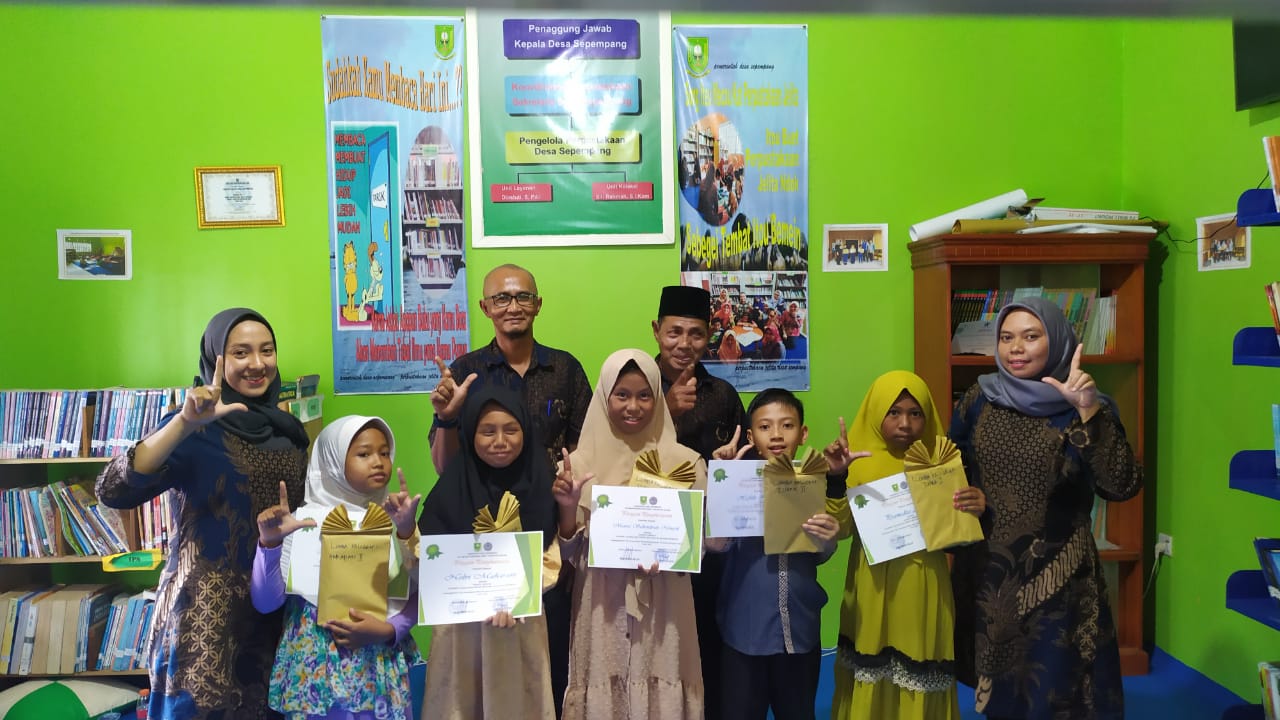 Desa Sepempang-KIM Sahabat Senua,Guna menumbuh kembangkan Minat baca dikalangan Masyarakat Desa Sepempang, Pihak Pemerintah Desa Sepempang melalui Pengurus Perpustakaan Jelita, Jumat pagi (28/Juni/2019) memberikan Penghargaan kepada Pengunjung Aktif yang melakukan aktivitas membaca di Perpustakaan yang satu atap dengan Kantor Desa Sepempang tersebut.